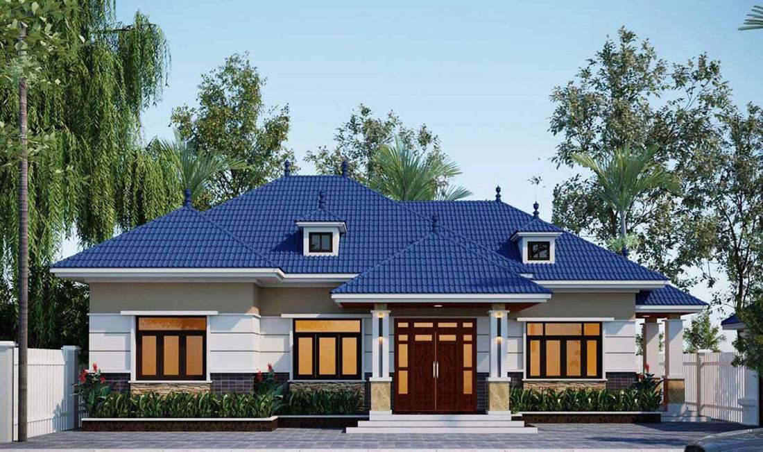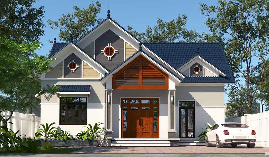 Mẫu số 6 – Mẫu nhà vườn mái thái 1 tầng hiện đại ở Ninh Bình