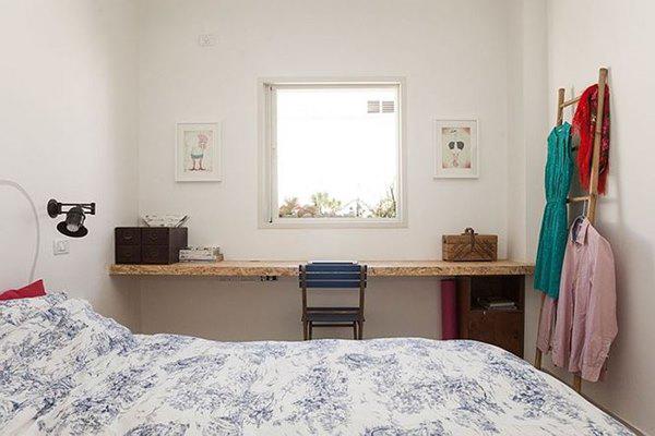 Bàn đọc sách đặt sát tường hướng ra ban công.