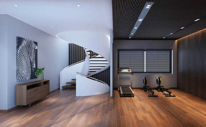 Phòng tập thể dục hiện đại nâng tầm đẳng cấp cho biệt thự phố tuyệt đẹp.