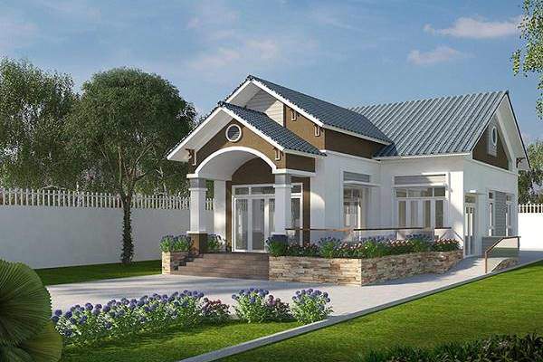 Sở hữu màu trắng nhẹ nhàng nhà cấp 4 mái thái chữ L này có phong cách hiện đại. Nhưng vô cùng tinh tế với mái vòm cong mềm mại và mái thái dốc được xếp thành lớp vô cùng ấn tượng.