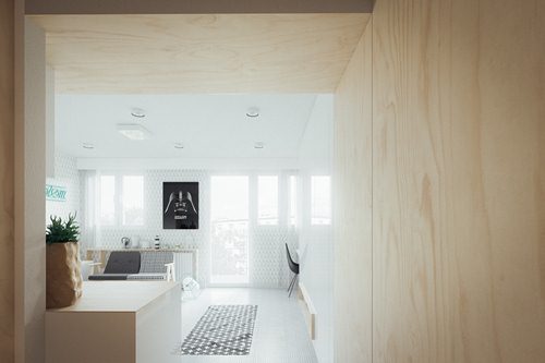 Nhà thiết kế tài năng Piotr Matuszek và Gosia Czarny đã thiết kế một căn hộ quá hoàn hảo cho cặp vợ chồng trẻ. Với diện tích chỉ vỏn vẹn 20m2 bao gồm đầy đủ phòng khách, giường ngủ, bàn làm việc, nhà vệ sinh.