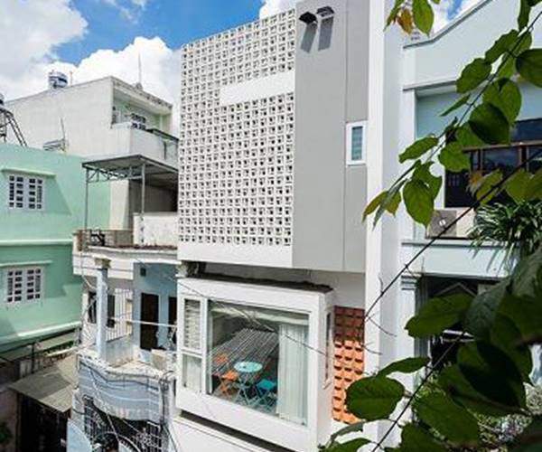 Nhà phố 4 tầng 52m2 ở Sài Gòn với giải pháp chống nắng hướng Tây bằng hệ lam gạch bông gió cho mặt tiền nhà. Nhà chính hướng Tây thiết kế thep sự tiện lợi, theo ý thích của chủ đầu tư cho các thành viên gia đình có không gian riêng tư thoáng mát.