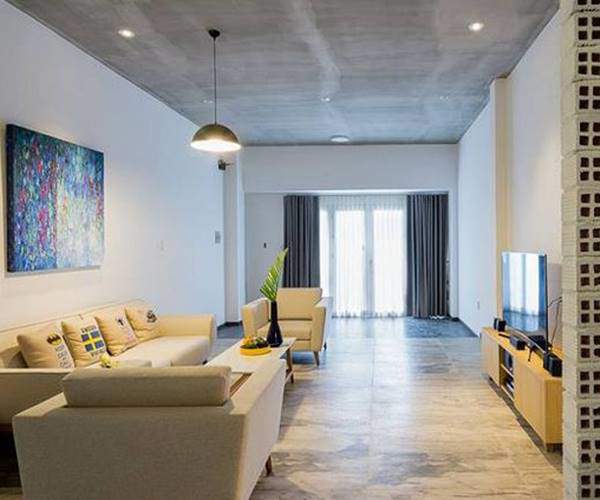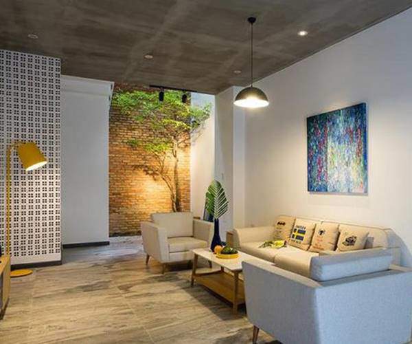 Phòng khách ngay tầng trệt với thiết kế đơn giản.