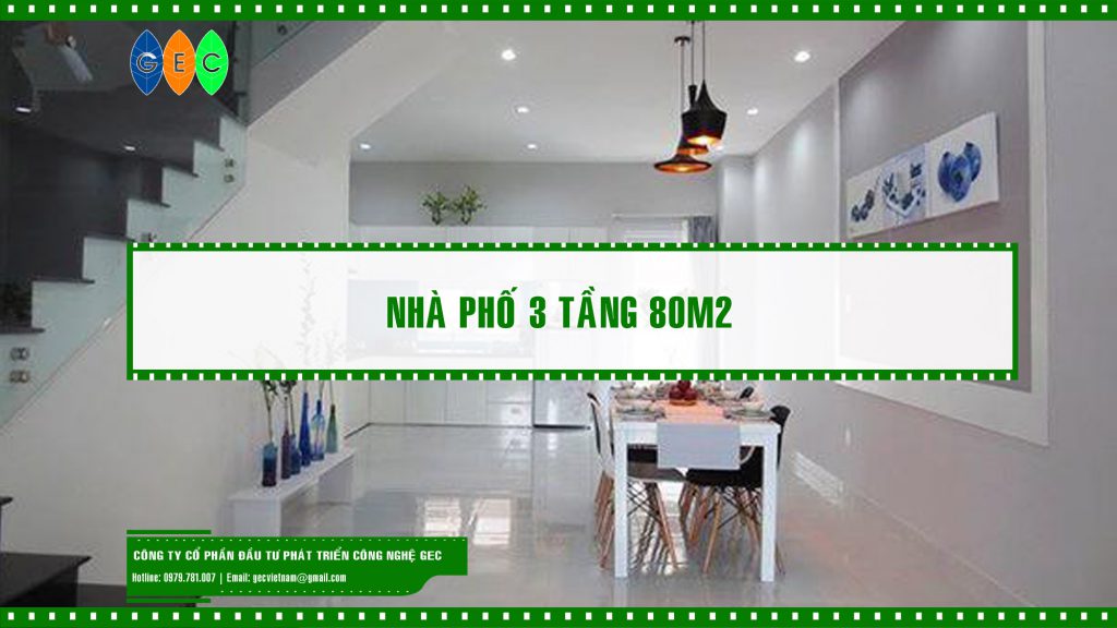 Nhà phố 3 tầng đẹp với diện tích 80m2 đầy đủ công năng sử dụng.