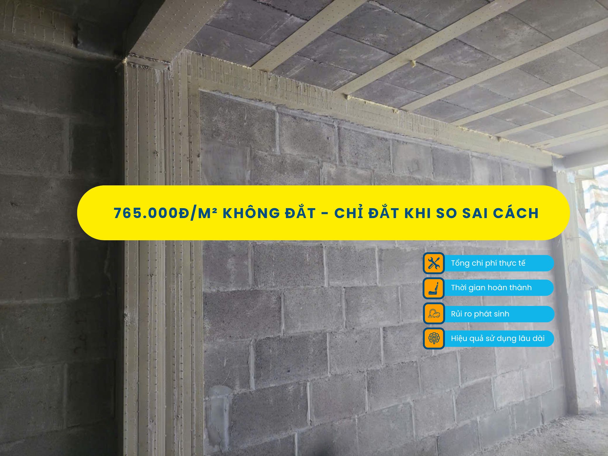 • Tường 100mm → tăng diện tích sử dụng: so với tường xây 110mm + trát 2 mặt (thường 140–150mm), GHC giúp tối ưu diện tích; ước tính khoảng 30m² sàn tăng ~1m² sử dụng (tùy mặt bằng/bố trí tường).