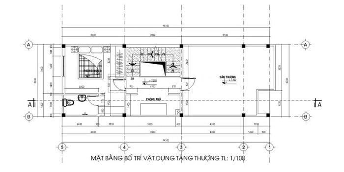 Tầng thượng sẽ được thiết kế phòng thờ, và có thể bố trí thêm một phòng master nhỏ bên cạnh phòng thờ để tăng diện tích sử dụng, phòng trường hợp những lúc nhà có khách muốn qua đêm.